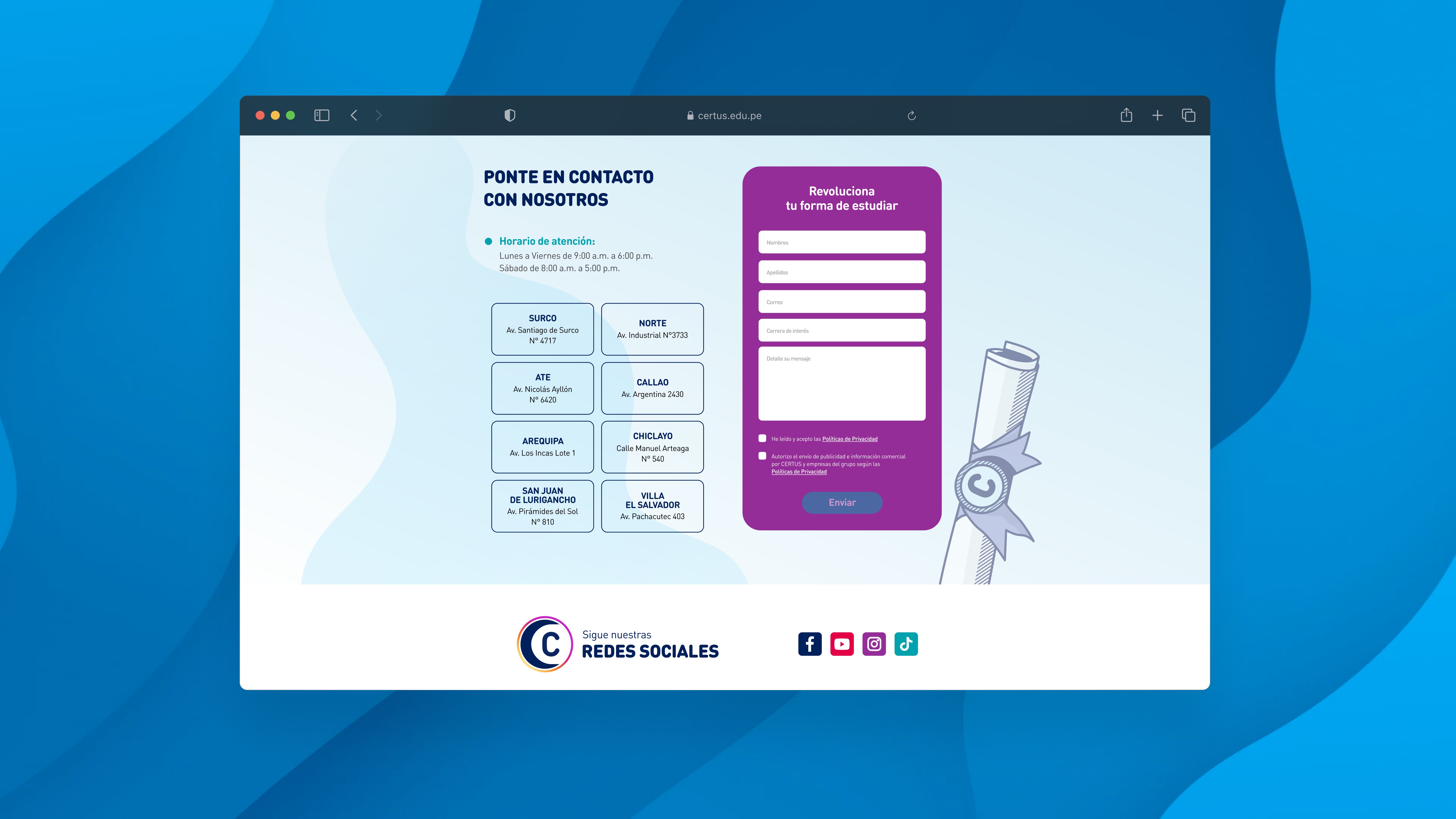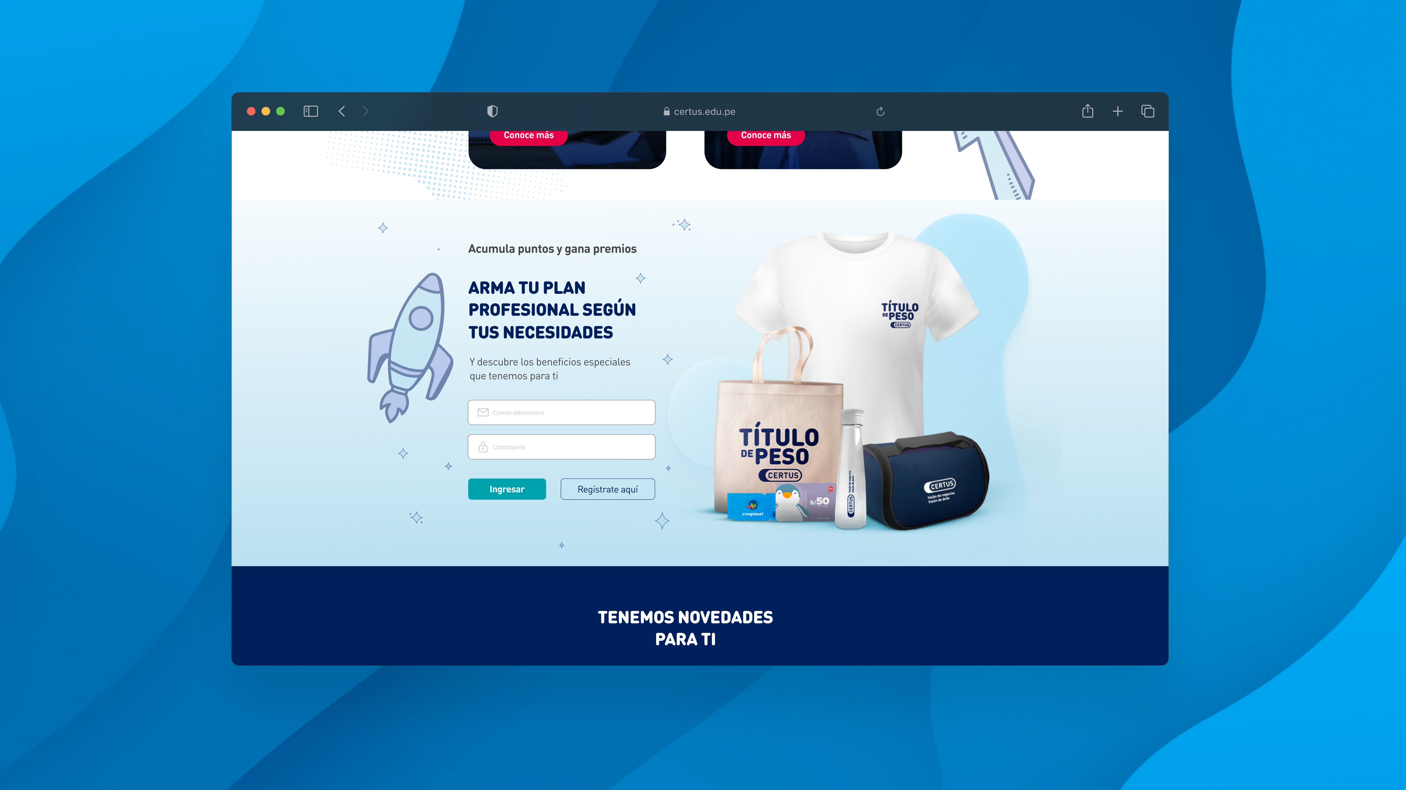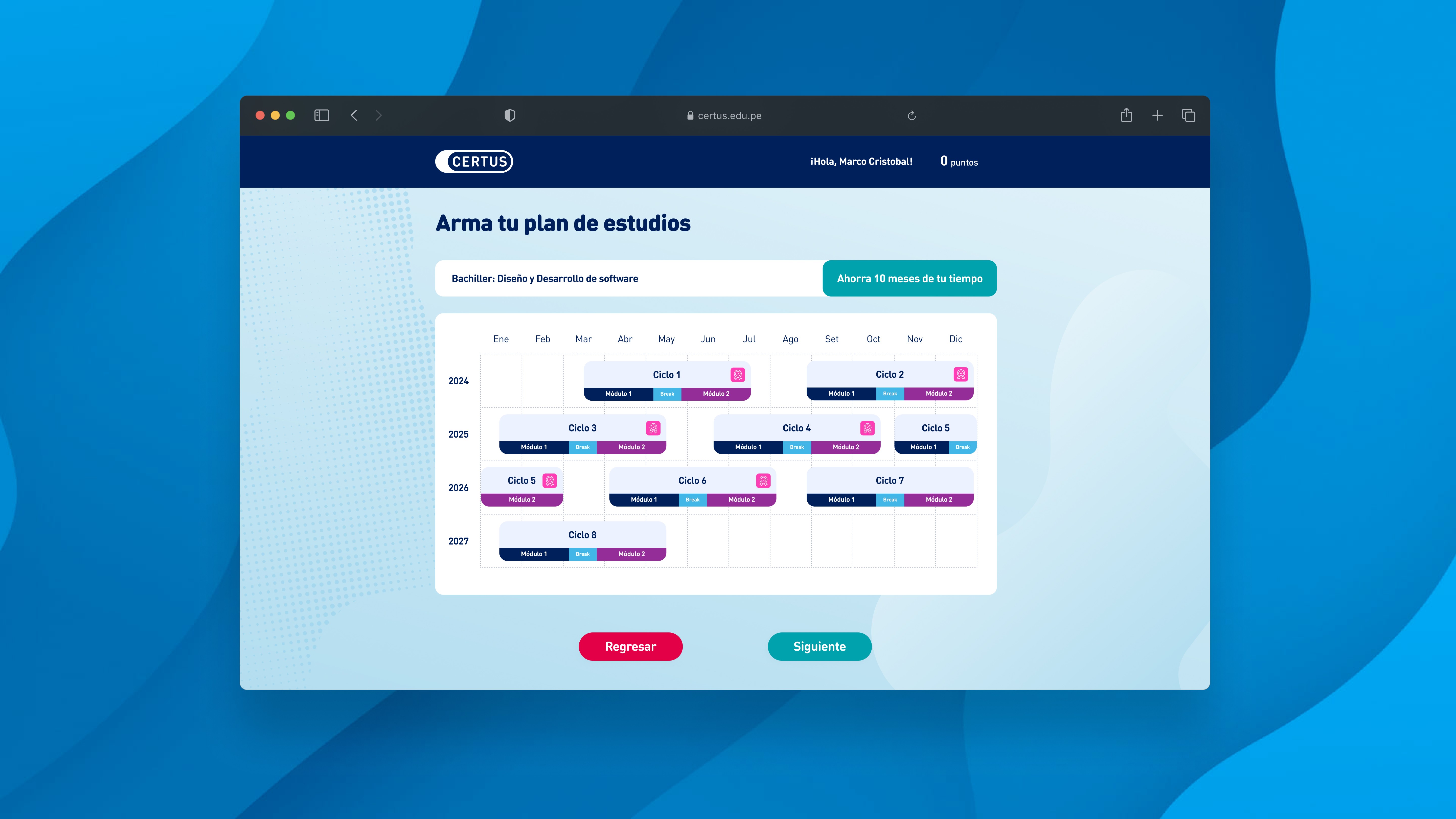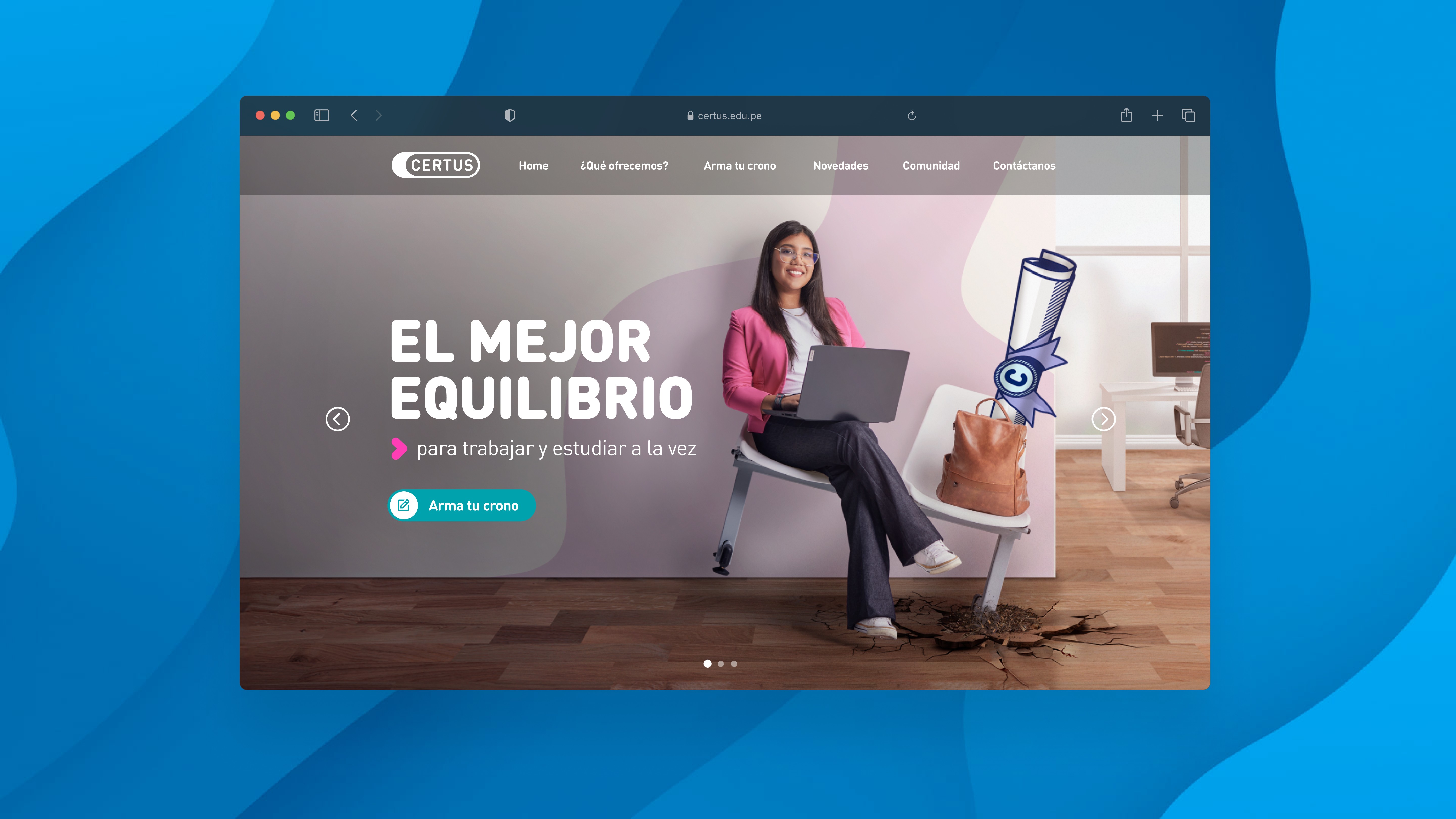 Se realizó el diseño de la interfaz del landing page de Certus, cuyo objetivo principal fue permitir que los usuarios armen su plan de estudios de manera sencilla e intuitiva. Además, la landing brinda información clara y detallada sobre el programa educativo, con el propósito de atraer a nuevos interesados y facilitar la toma de decisión.